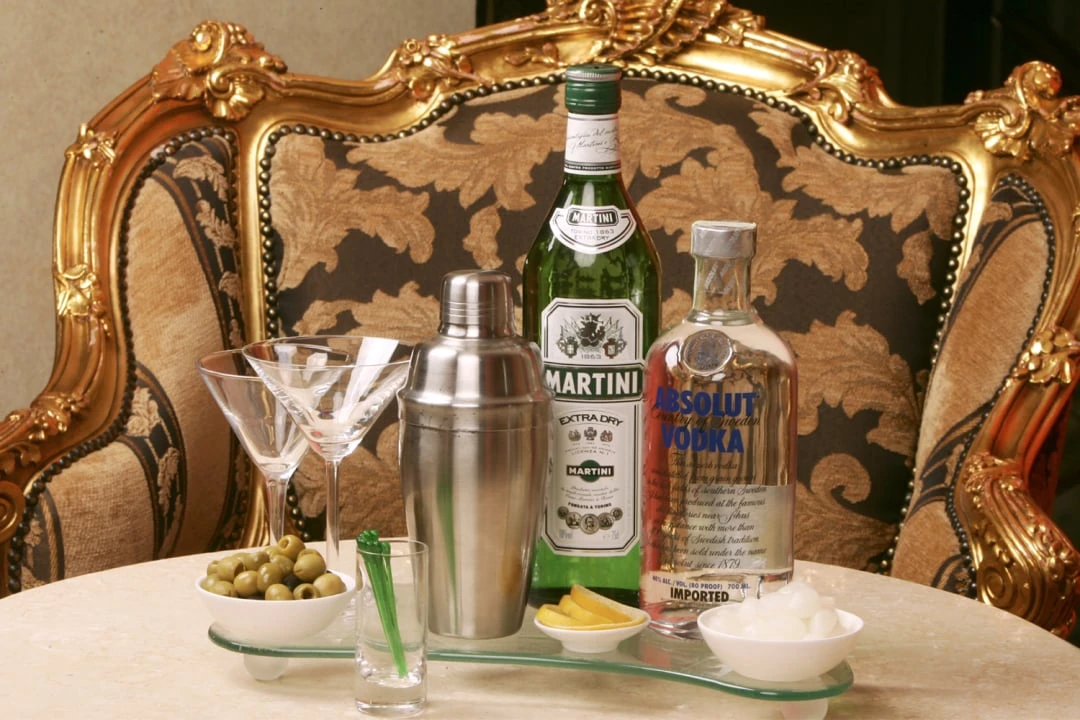 Bottle of Absolut Vodka, Martini Dry, olives, lemon twists, pearl onions and shaker to take awayCZK 2,950