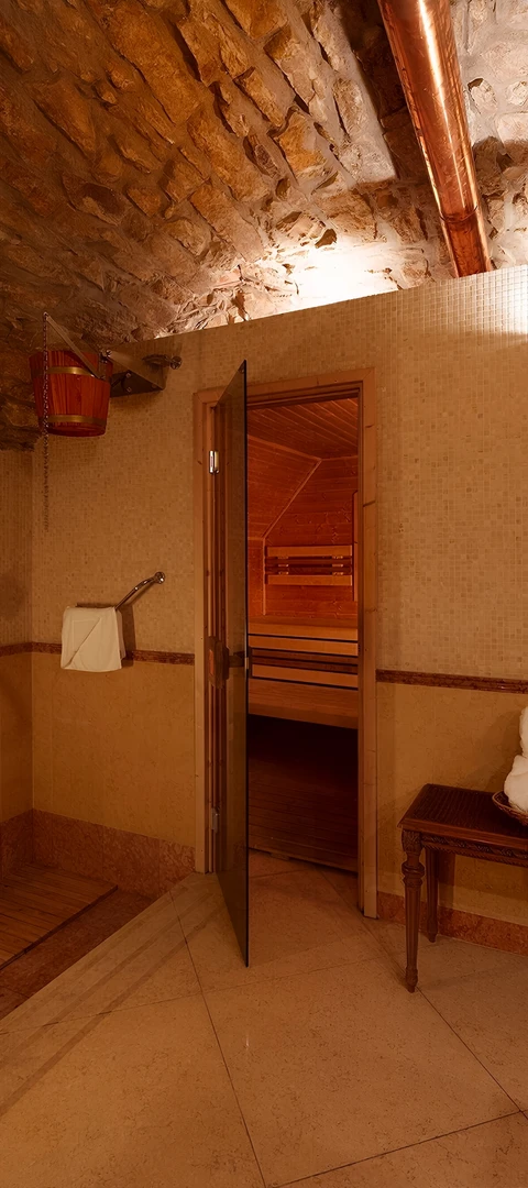 Venture downstairs to the ground floor, where vaulted ceilings cradle two distinct realms. The first invites you to engage in invigorating workouts—a gymnasium pulsing with energy, awaiting your spirited presence. Here, you sculpt your body, your movements echoing against the stone Yet, just beyond lies another world—a haven of serenity. Imagine the soft glow of candlelight, the soothing warmth of a sauna, and the gentle embrace of a Jacuzzi bath. Here, time slows, and the outside world fades away. It is a place to rejuvenate, to find solace in stillness. Welcome to our realm—a canvas painted with care, where every stroke celebrates life, beauty, and the art of being.